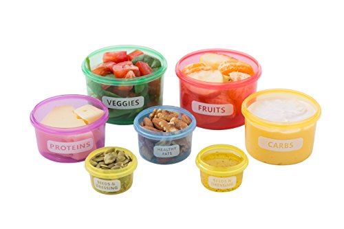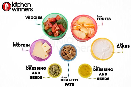 7 Piece Portion Control Container Set Multi-Colored Perfect sized Food Storage Boxes with Leak proof Lids for Diet Meal Preparation By Kitchen Winners