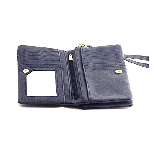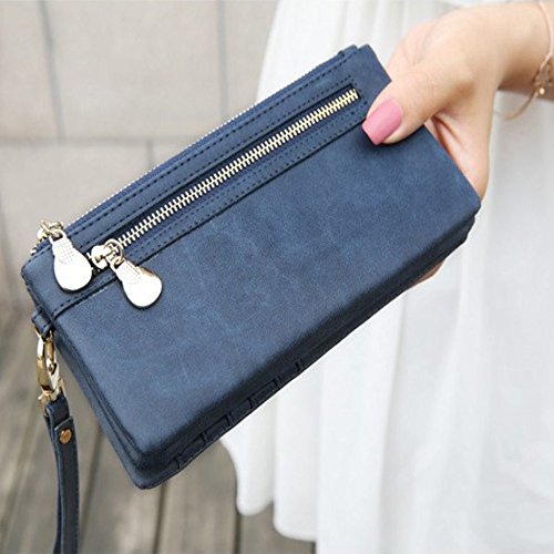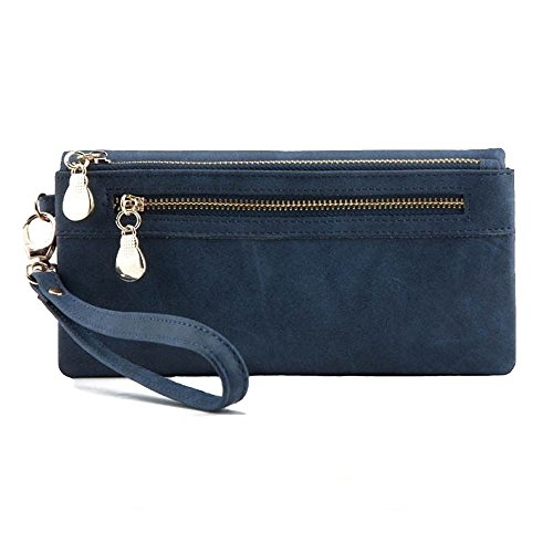 -. Brand : Gifts Are Blue -. Color : Navy Blue -. Department : womens -. EAN : 0643380981677 -. Feature : Well crafted women's leather clutch purse with double zipper on the outside, and another interior zipper that is perfect for holding coins. / Interior features photo card compartment, several card compartments, zipper pocket and note compartment / This Clutch Wallet has a short strap for holding that can also be removed, allowing it to function as a wristlet / Versatile women's clutch / Outer is made with split leather and inside lining has polyester -. PackageQuantity : 1 -. ProductGroup : Shoes -. ProductTypeName : HANDBAG -. Title : Blue Leather Clutch Purse Wristlet with Double Zipper -. UPC : 643380981677