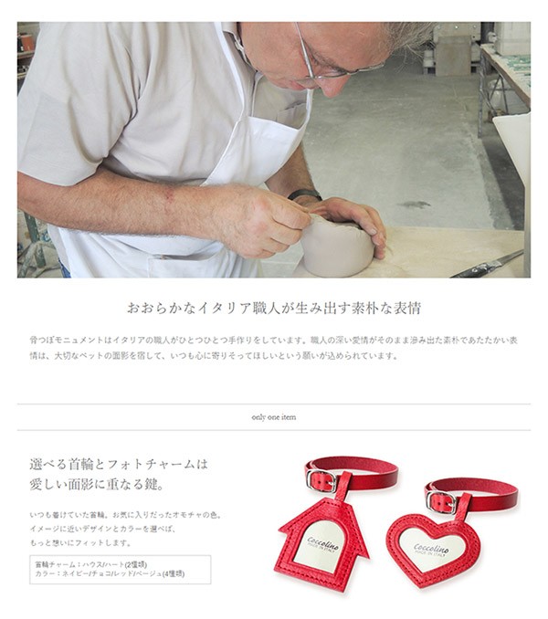 普段から様々な動物陶器を製作しているこの工房ならではのやわらかいフォルムラインが特徴的で、飼い主がペットの面影を感じて愛着を持てるように、後姿にまでこだわって開発しました。
