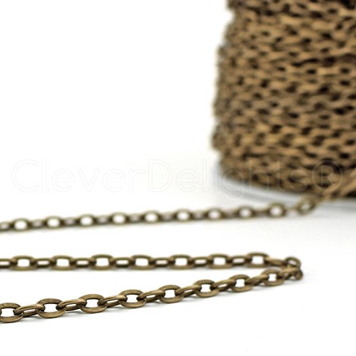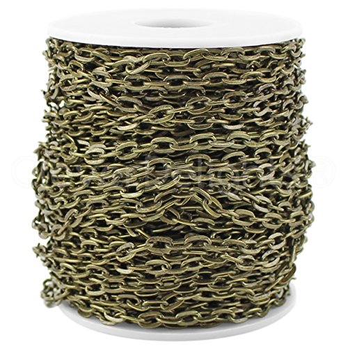 CleverDelights Cable Chain Spool - 30 Feet - Antique Bronze Color - 5x7mm Link - 10 Meters - Bulk Roll