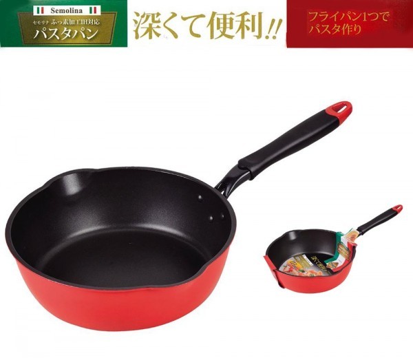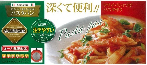 | フライパン1つでパスタ作り。大口径で注ぎやすい、ソースの盛り付けが楽々なパスタパンです。 |