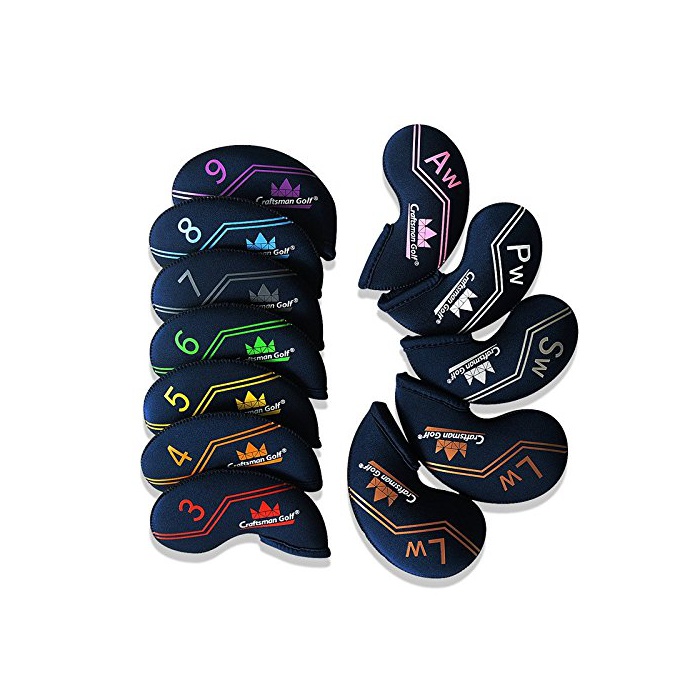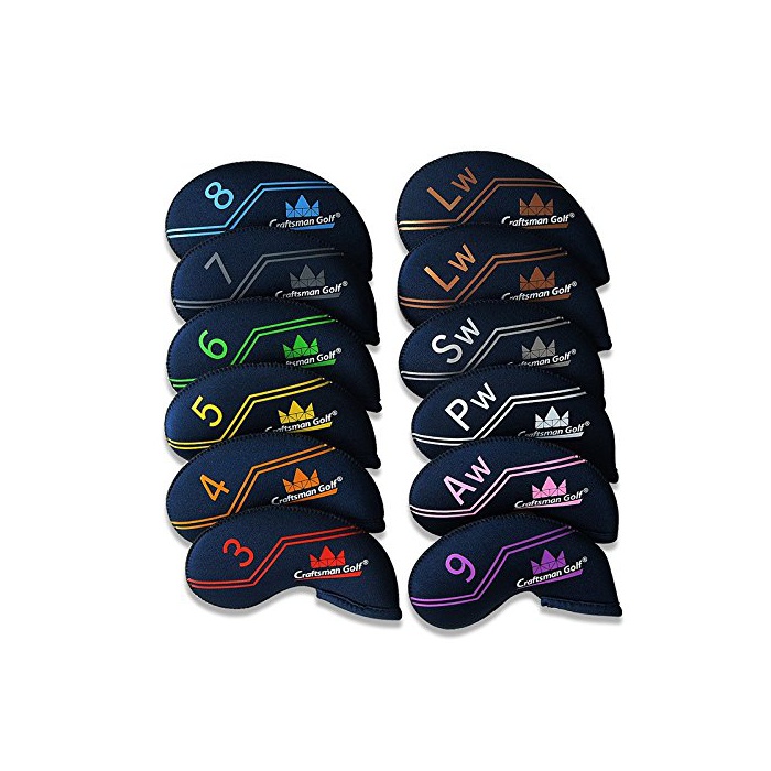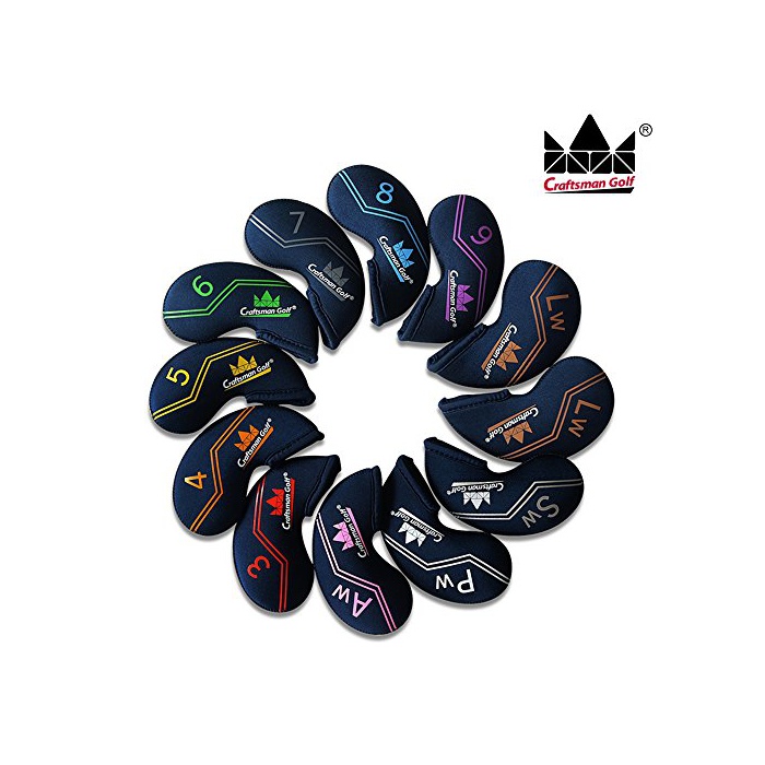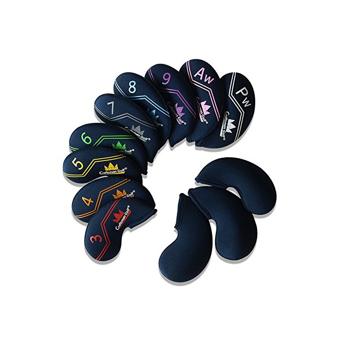 원본상품명: CRAFTSMAN(クラフトマン)カラフル?字 ゴルフヘッドカバ? アイアン カバ? ネオプレン接着加工 12枚入り 全2色 (ブル?ブラック)