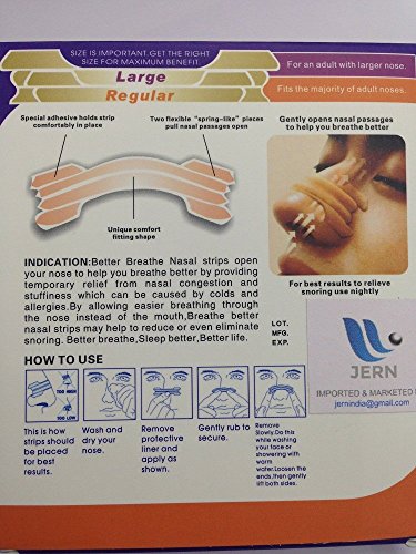 -. Binding : Health and Beauty -. Brand : Better Breath -. EAN : 0700153971768 -. Feature : Standard Size, Pack of 30. / NO RETURNABLE. / Please avoid using in places where there is too much oil/sweat exposure / Helps reduce disturbed sleep for self & others, Most economical pack for your average monthly requirement. / Easy to Install (Hold on to it once stuck onto nose for sometime before you leave for bed) -. IsAdultProduct : 0 -. Label : Better Breath -. Manufacturer : Better Breath -. MPN : OS044 -. PackageQuantity : 30 -. PartNumber : OS044 -. ProductGroup : Health and Beauty -. ProductTypeName : HEALTH_PERSONAL_CARE -. Publisher : Better Breath -. Studio : Better Breath -. Title : Better Breath Nasal Strip, Sleep Better, Pack of 30 -. UPC : 700153971768