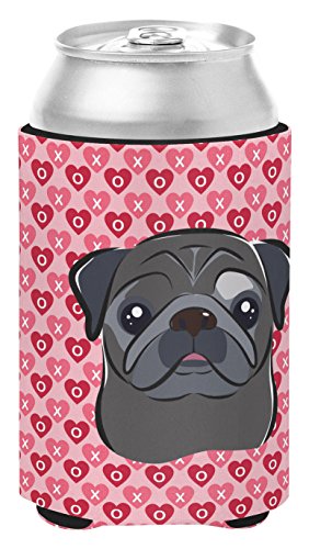 Caroline's Treasures black Pug Hearts Can or Bottle Hugger, Multicolor