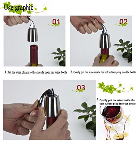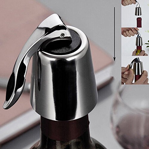 -. Feature : Press down little tail of the stopper after put the stopper on the top of the bottle; To open press the little tail of the stopper up to release it. / The tight seal keeps your wine fresh for days, the stopper maintains the wine natural flavor. / Leak-proof, airtight seal; with inner rubber plug, it fits all standard wine bottles - we never get leaks. / Elegant, sleek look and fine craftsmanship; the matte brushed finish makes it fingerprint-proof. / Whether you are a casual wine drinker, a wine enthusiast, or a wine connoisseur you can count on these bottle stoppers to keep enjoying your wine fresh for a few more days, look good on your table and avoid any leaks in your fridge.