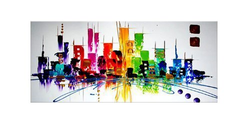 -. Title : Santin Art-Colorful City-Modern Abstract Oil Painting Wall Art Decorations on Canvas Home Decor CitySpace Color City