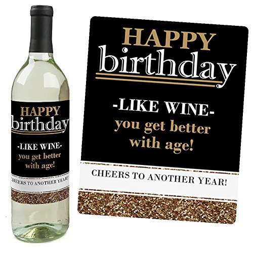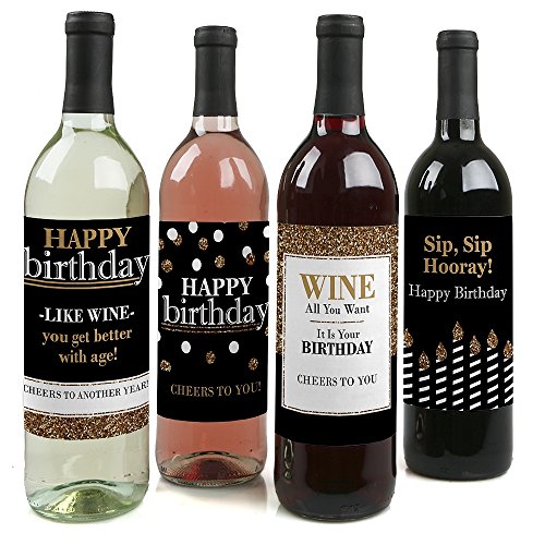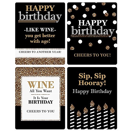 Adult Happy Birthday - Gold - Wine Bottle Labels Birthday Gift - Set of 4