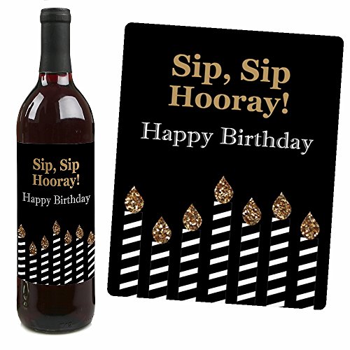 Wine bottle labels have the following sayings on the design: Happy Birthday - Like Wine - you get better with age! * Happy Birthday Cheers To You! * Wine All You Want It Is Your Birthday * Sip, Sip Hooray!