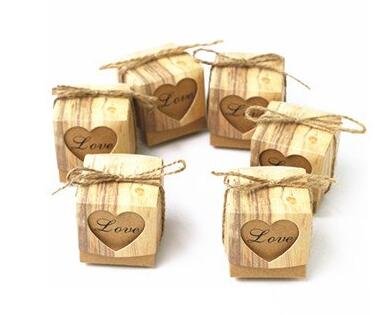 50pcs Love Heart Candy Box Rustic Wedding Gifts Kraft Packing Box With Burlap Jute Ribbon Wedding Party Decoration