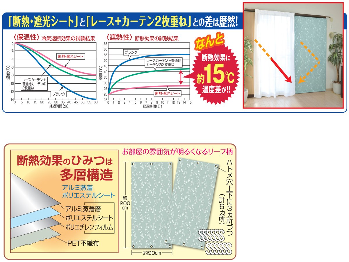 Summer heat and winter cold of measures interior art insulation and light shielding sheet Disc 2 Leaf Pattern Green