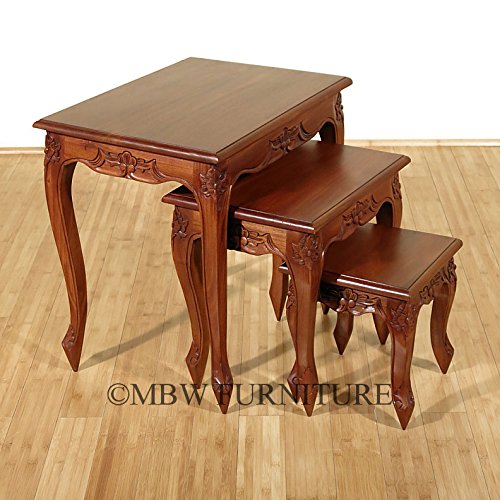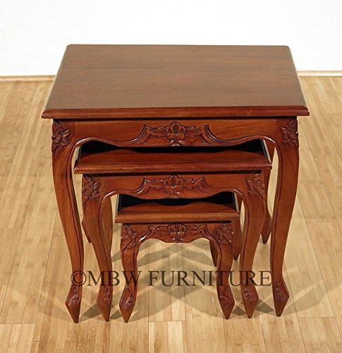 -. Title : 3-Pc Solid Mahogany Queen Anne Nesting Tables Set