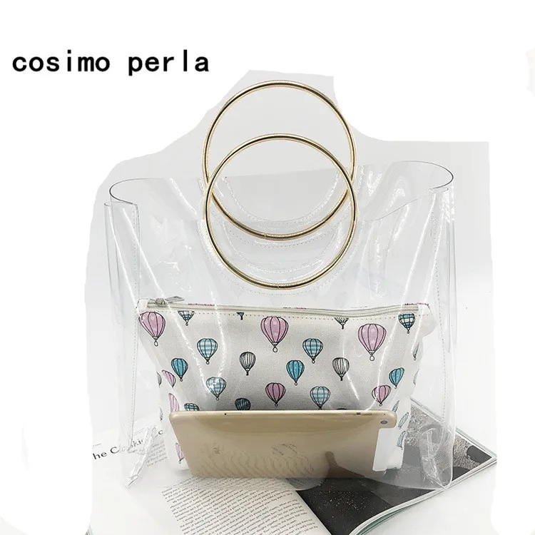 Jelly Candy Clear Transparent Handbag:beach tote travel