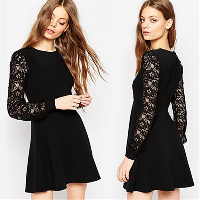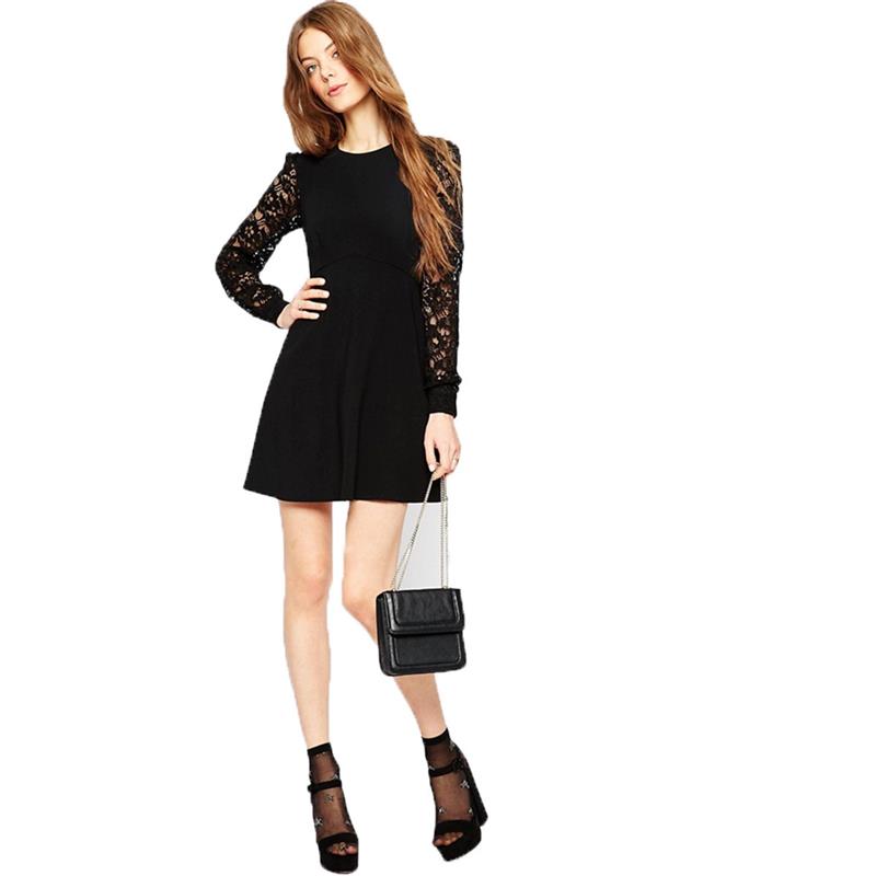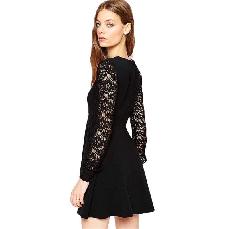 Sexy,Bodycon,O-Neck,Long Sleeve,Back Zipper,Lace Stitching