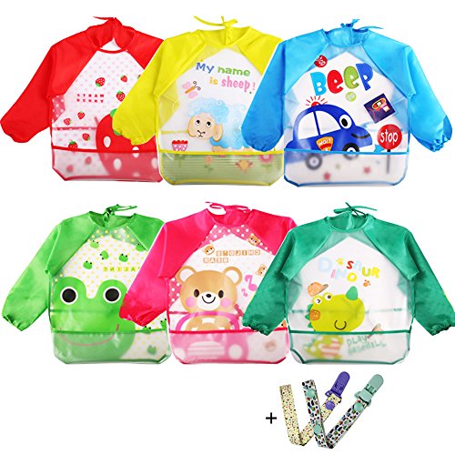 -. Binding : Toy -. Brand : Coceca -. EAN : 0729680709132 -. Feature : 6 Patterns and colors: little red strawberries, small yellow sheeps, blue cell car, little green frog, pink bear, little blue and green dinosaur, to let your children fall in love of eating / To prevent mouth water and dirty things from your baby's clothes, and to prevent food from falling when your baby's eating, comes with a chain that can be clipped on the clothes, very suitable for your various needs / Waterproof material on chest part, with special pocket design on the back of the apron, so you can turn it to the front when your child eats and turn to the back when you don't need it so it will not affect the appearance / Our bib features: Easy to wash and easy to dry, both waterproof and leakproof, easy to use, eco-friendly and durable / Note:The material on chest part is plastic, not machine safe -. IsAdultProduct : 0 -. Label : Coceca -. Manufacturer : Coceca -. MPN : 4327978217 -. PartNumber : 4327978217 -. ProductGroup : Toy -. ProductTypeName : TOYS_AND_GAMES -. Publisher : Coceca -. Studio : Coceca -. Title : Coceca 6 Pcs baby sleeved bibs for 1-3 Years old Infants -. UPC : 729680709132
