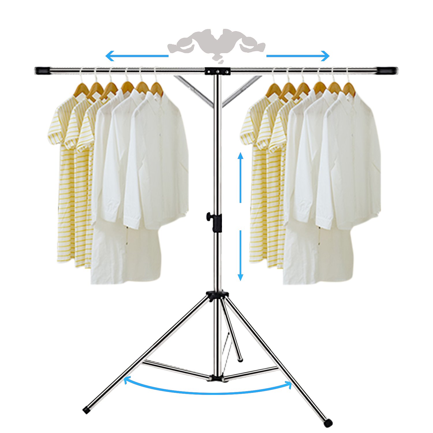 ※「高強度によっての高耐荷重力」合金SUS201(耐圧性・耐酸性・耐アルカリ性なのに優れた)での仕上げで、同規格の物干しラックと比べて、より多い服を並んで干せます。