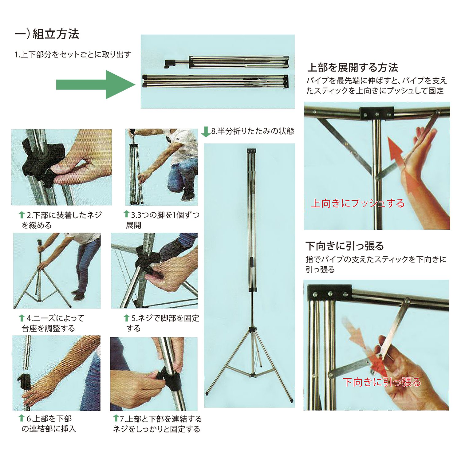 ※「伸縮型でご自由に調整可能」かけ竿は125~185cm、上下は95~180cm、台座50~80cmの空間で調整できます。服の数量によって、幅広く範囲まで調整できるタイプです。ご注意:使用時 、物干しラック(ハンガーラック)のバランスをきちんと保持できるように、中央部から対称的に服を並んだり、取り出したりすることをお勧め致します 。