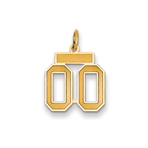Celebrate your favorite sports player, lucky number or milestone date in your life with a prominent 14k yellow gold charm. Each laser-cut satin and polished number is approximately 12mm (7/16 Inch) in length, which is finished with a 3mm top bar and classic jump ring that will accommodate up to a 3mm chain. All double-digit combinations from 00-99 are custom made to order so please allow approximately 7-10 additional business days for shipping. Made in the U.S.A. Chain not includedFeature