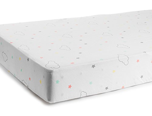 Three Tulips Crib Sheet, Fitted 100% Organic Jersey Cotton Knit 2 Pack Set - Stars, Clouds, Bears and Moons