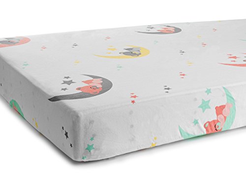- ♥Trendy and Fashionable, Perfect Gift Idea: 2 pack, Organic Cotton Jersey knit crib sheets comes in unisex, gender neutral, colors: grey, coral, yellow and green. The snuggly bears on the moons along with the serene clouds and stars designs makes our crib sheets a perfect baby shower gift for both boys and girls