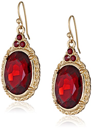 1928 Jewelry Gold-Tone Siam Red Oval Drop Earrings
