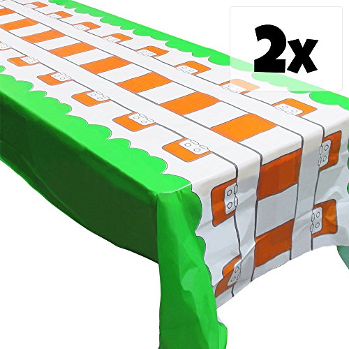 - Make lasting memories and drape your party table in railroad style with these awesome train track tablecovers that measure approximately 108” x 54” each and work with square party tables.
