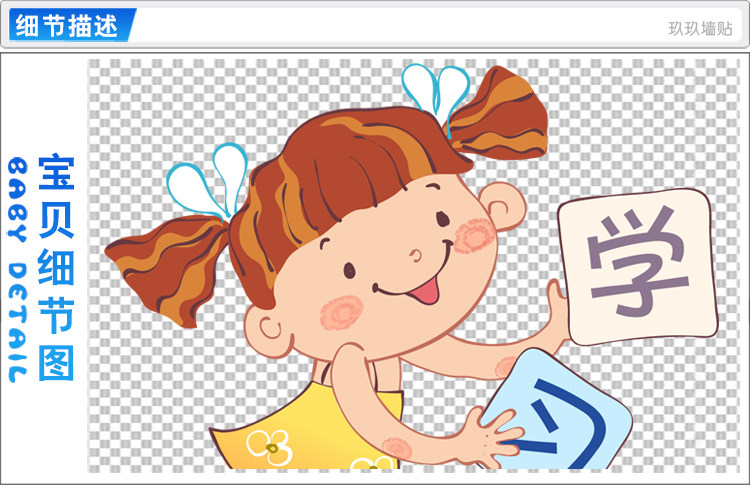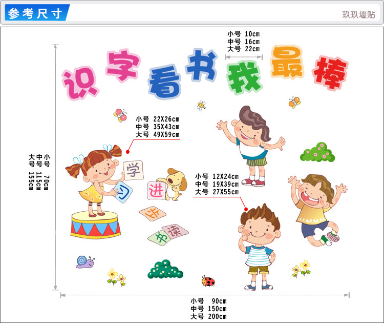 幼儿园儿童教育机构托儿所背景墙装饰墙贴卡通人物读书贴纸贴画