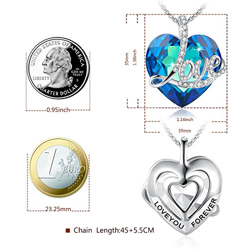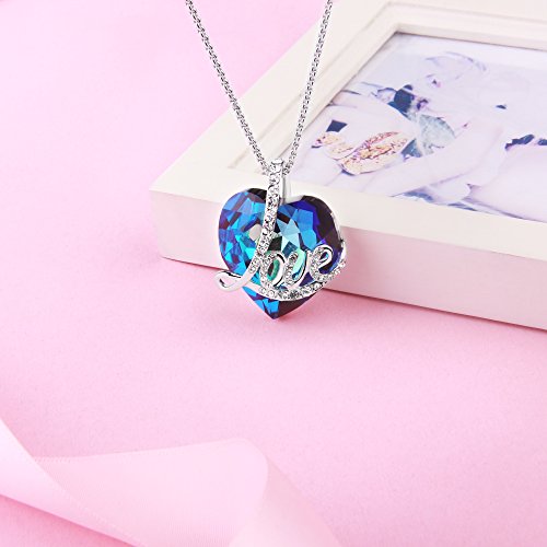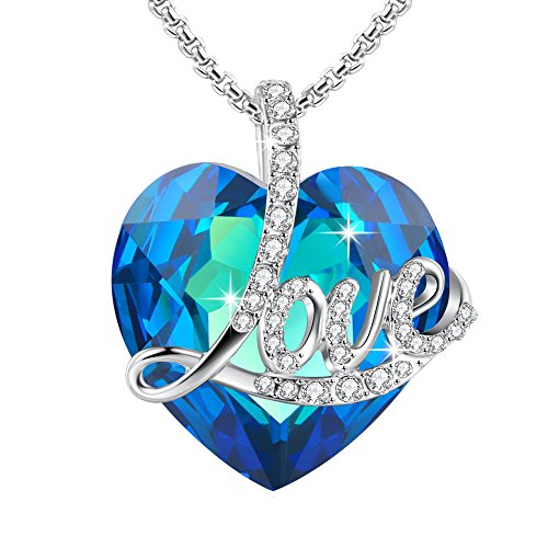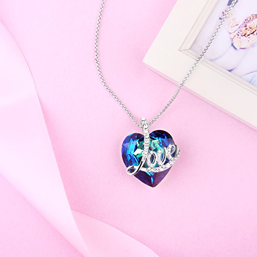Angelady"Blue Love" Heart Pendant Necklace of Swarovski Crystal Engraved"Love",Birthday Anniversary Gifts for Women