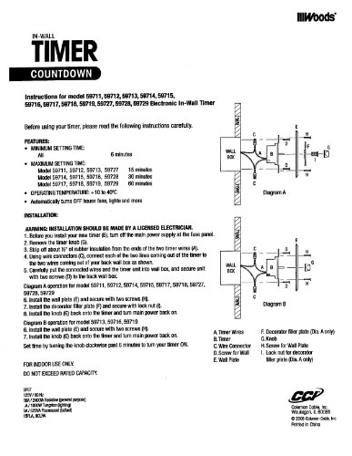 Woods 59717WD In-Wall 60-Minute Spring Wound Timer, White