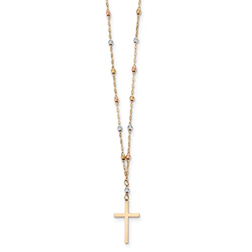 ICECARATS DESIGNER JEWELRY 14K TRI COLOR YELLOW WHITE GOLD BEADED CROSS RELIGIOUS CHAIN NECKLACE