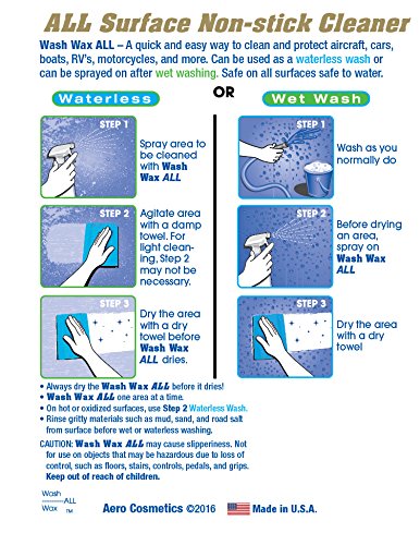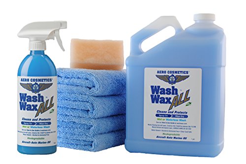 -. Feature : SIMPLY THE BEST WATERLESS CAR WASH. Gently Cleans and Protects leaving a Non-Stick UV Protective Coating on All Vehicle surfaces. Just Spray on and Wipe Dry. 144oz will Waterless Wash up to 36 cars or Wax As You Dry 57 cars. / High performance Aircraft Quality Wax for your Car Boat & RV. ONCE YOU SEE THE DIFFERENCE YOU WILL NEVER USE AUTOMOTIVE PRODUCTS AGAIN! Used by Air Force One, The Military, Airlines, Corporate and private aircraft owners around the world for over 28 years. This is a high quality easy to use product. / Water Based - Alcohol & Ammonia Free. Our plant based Eco friendly formula is biodegradable and Safe on ALL surfaces both Inside and Out, Meets Boeing Aircraft (D6-17487P, D6-7127M) & AirBus Industries (09-00-002) and McDonnell Douglass CDS #1 cleaning specifications. Also, Human Friendly, NO eye or skin irritation like some other automotive products. / Can be used as Waterless Wash or Just spray on after wet washing to Wax As You Dry. Works on wet or dry surfaces. Kit includes 1 full gallon, 1 full 16 oz spray bottle. 1 mini bug scrubber and 4 Microfiber towels. Also includes a FREE Product Guide, How to Use Car Care Guide, and a What to Use Vehicle Guide. / 100% CUSTOMER SATISFACTION MONEY BACK LIFETIME GUARANTEE. We guarantee that you will find our products hands down superior to any other product or your money back! Also, our products are excellent around the house on Granite counter tops, Appliances, Leather Furniture and In the bathroom, prevents hard water spots from sticking! Stays clean longer and cleans up easier with non-stick coating.