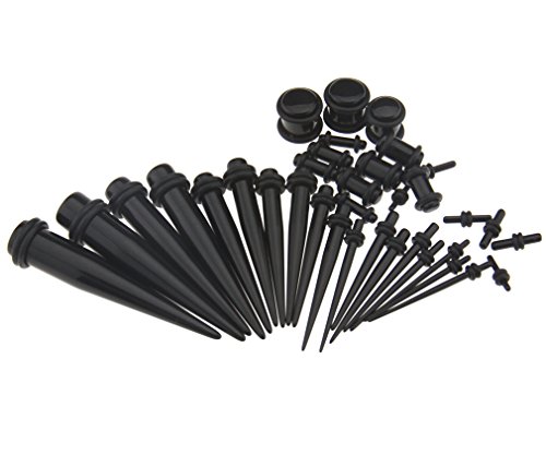 -. Title : 36pcs Black Acrylic Ear Plugs Expander Kit Taper Stretcher Gauges Stretching