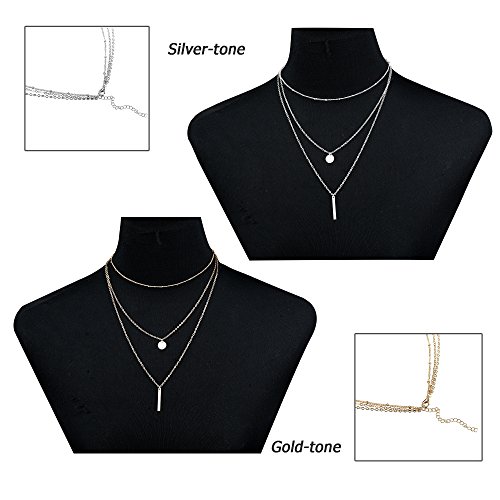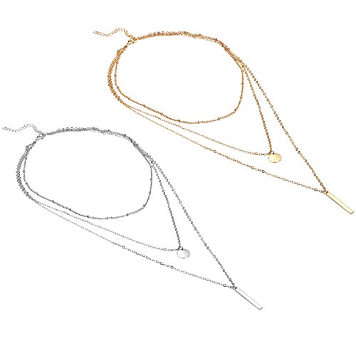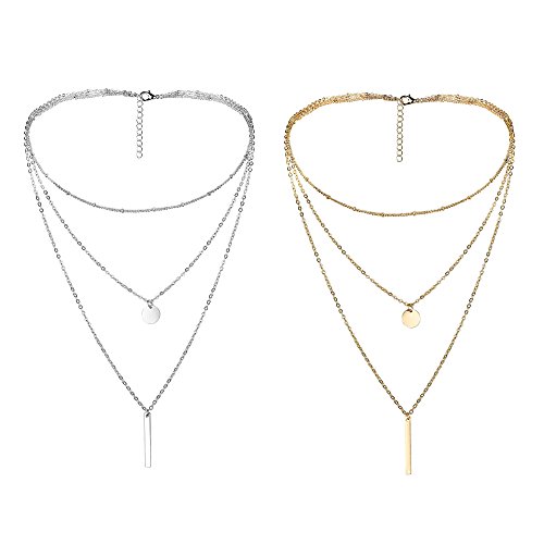-. Title : Thunaraz 2Pcs Layered Choker Necklace for Girls Womens Choker Necklace Set Multilayer Chain Stick Pendant Necklece 15''