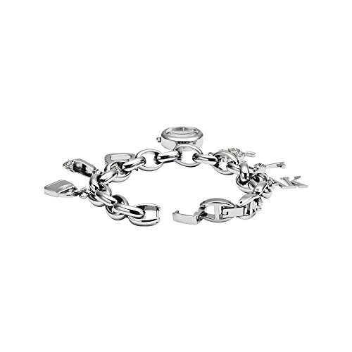 Amazon.com Product Description This great charm watch is fun and flirty pairing a casual, open link silver tone bracelet with dressed up charms. The polished finish, silver tone AK logo and handbag charms join a key, clover, heart and shoe charm that sparkle with clear genuine Swarovski crystal accents. Bracelet fastens with a jewelry clasp and has an inner circumference of 6" and includes two extender links. AK Anne Klein is the leading ladies' fashion watch brand. Incorporating current trends and classic timepiece styling, AK Anne Klein offers a full line of ladies' watches at competitive prices. The brand has broad appeal and has built a loyal customer base over its 35 years of success. All AK Anne Klein watches are made with only high-quality materials and are covered by a limited lifetime warranty.