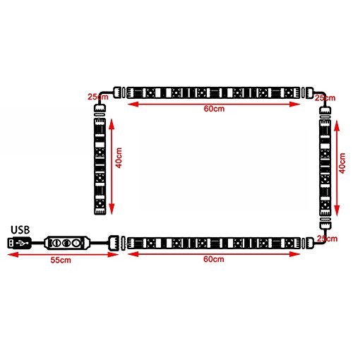 - Neon accent led lights strips mainly used for TV decoration(32~60 inches). Please measure your TV side to order the one which fit best, the length of 4 LED strips for reference, 2 * 1.97FT, 2 * 1.31FT.