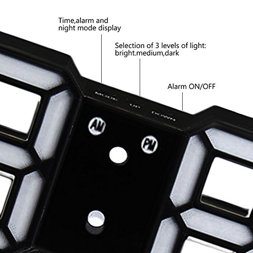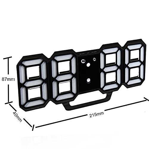 Function: LED time display(the time display 0:00) There are 3 levels of brightness(the default brightness is medium) Night mode with automatic dimming Total 3 functional buttons:MODE,UP,DOWN Total 4 positions time display(12/24 hour modes) The alarm AL display is 6:00 Alarm with snooze function Snooze function,5-60 minutes(The default interval time is 5 minutes) Power:5V(AC adaptor excluded),CR2032 button cell battery(included) for settings back up,USB Cable(included) Time Setting: Press MODE for 3s to enter time setting, setting order: hour-minute. Alarm Setting: Under alarm mode, press MODE for 3s to enter time setting, setting order: hour-minute-snooze time. 'AL' will light up when setting.When the alarm beeps: Press MODE to active the snooze function.The AL icon will flash.Or press DOWN to turn off the alarm.The AL icon will turn off. Night Mode: The clock will automatically lower LED brightness under night mode, press MODE twice times to enter night mode. Press MODE to turn night mode on/off. When night mode is on, press MODE to ender night mode setting, setting order: start hour-start minute-end hour-end minute. Brightness Level Setting: 3 Brightness levels: Bright, medium, dark Default brightness level is medium. Press UP to switch brightness level. Specification: Material:Acrylic Color:black Display: digital Light color:blue/red/white/green Battery:CR2032(included) Size:21.5*8.7*4cm/8.5*3.4*1.6inch Package included: 1 x LED clock 1 x USB cable 1 x User manual 0