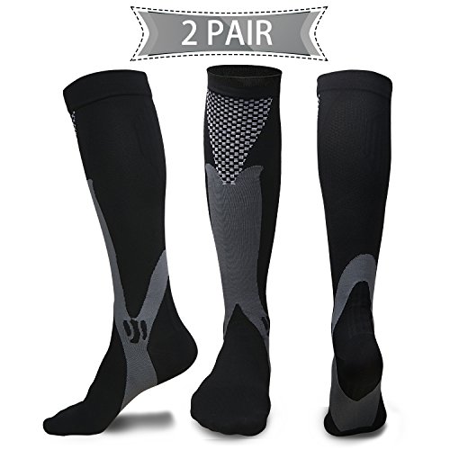 Compression Socks for Men & Women(2 Pairs), BEST Medical Grade Graduated Recovery Stockings for Nurses, Boost Stamina, Varicose, 20-30 Mmhg Fit...