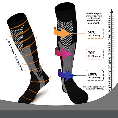 COMFORTABLE DESIGN: (20 - 30 MmHg) Women and Men at any age. The superior grade circular knit structure delivers 360-degree stretch for greater flexibility and durability. Stay put Cuffs Soothing feeling at the bottom and sides of foot, with no pinching.