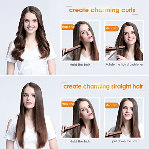 【Quick Heating and Universal Dual Voltage】 15 Second to fast heat-up this flat iron helps to straighten hair in just several minutes. The wider straightening plates have been designed specifically for thick or long hair. Universal Dual Voltage (100-240V) for travel can help you get perfect look in many countries!
