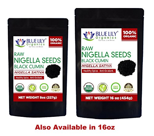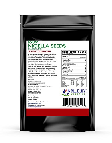 Blue Lily Organics Raw Black Seeds (Nigella Sativa) - Certified Organic (8 oz)