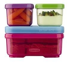 Rubbermaid Lunch Blox Kit for Kids which includes 7 pieces are designed to work together to save space and stay organized in a lunch bag (2 side containers with lids holds 1.2 cups, 1 blue ice, 1 sandwich container with lid holds 2.6 cups). It can be configured to fit various lunch bag shapes and sizes. The Rubbermaid Lunch Blox is BPA Free, microwave, dishwasher and freezer safe.
