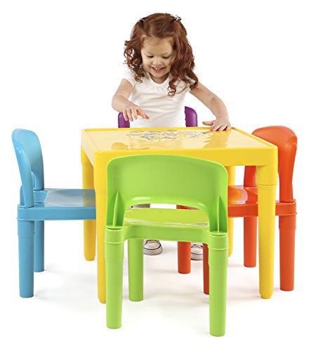 Tot Tutors Kids Plastic Table and 4 Chairs Set, Vibrant Colors