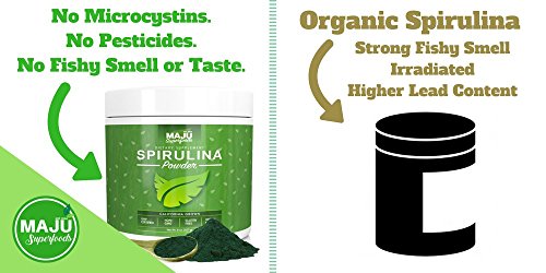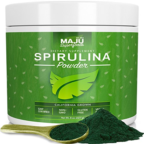 Simply put, the cleanest most powerful Spirulina you can buy.Our Spirulina is grown in Southern California in an isolated region free of cross contamination, and has consistently been rated higher than other brands grown in the USA. Each batch of our Spirulina is harvested from isolated tanks, carefully analyzed for contaminants, and carefully dried to ensure preservation. We stand behind our product, and are confident you will notice the difference of Maju Superfoods. Proudly 100% California Grown, and Batch Analyzed by ExpertsOur Spirulina is clean. Most organic spirulina is grown in Asia (China) undergoes potentially dangerous irradiation. Why not keep spirulina healthy (as it should be) by sticking with a clean source? FREE Recipe eBook "Master Superfoods" on Purchase We will send you our top 5 spirulina recipes instantly upon purchase. 30 Day 100% Money Back Guarantee Try us out. Heck, even return an empty bottle if you want. If you do not like our product, simply issue refund request. No questions asked. So, you want smooth, rich, dark-green Spirulina? Got it. Our customers have taste compared us to (and have rated Maju's Spirulina Powder higher than) the other top Spirulina brands. Our rating should speak for itself! Customer Reviews: "This makes for an excellent additive to any food items that you want to add it too. It works especially well in smoothies and other beverages as well. It does have a little bit of an after taste that can take some getting used to but I can feel the difference in my digestive system and it has done a great job of helping me stay regular and drop a couple of pounds in conjunction with eating healthier." - April Jackson, March 2016."This spirulina has a pleasant taste compared to similar products and mixes well without clumps. It's a key ingredient in my daily protein shakes. " Heather W.Feature