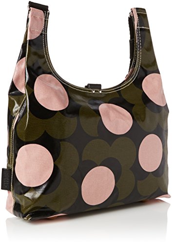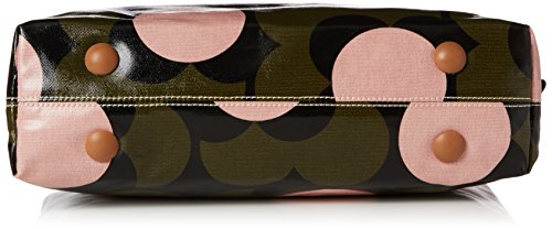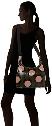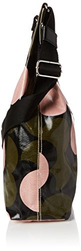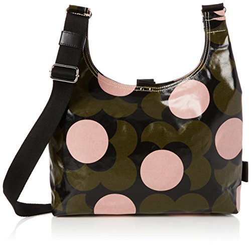 Shiny laminated midi sling bag in the 'shadow flower' print with leather trims, double sided adjustable webbing strap and leather magnetic tab for closure. Inside details include navy linear stem jacquard lining, small leather logo card holder pocket, small zip pocket, elasticated key chain and mobile pocket. Silver coloured hardware. Adjustable webbing tape strap that allows the bag to worn as a shoulder bag or across the body (max length 110.5Cm).