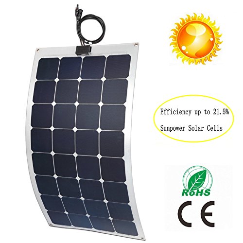 -. Feature : Brand Solar Cell: GreeSonic utilizes SunPower Solar Cell with a higher-than-average 21.5% efficiency / Flexible panels : the panel can be gently flexed to follow a smooth curve of 20 degrees max, and can be mounted on RVs, cabin, house,tent, or any other irregular surface / Superior Durability and Thermostability : the water resistant semi-flexible solar panel is ultra durable , thermostable and ideal for Motorhomes/RVs, Expedition Vehicles,Commercial Trucks/Trailers, Caravans/Popup Off-Grid and Remote Communication sites and more / Powerful and Lightweight: this solar panel packs 100W of power yet is only 2.5mm thick and weighs only 2.7kg, making it easier to transport, hang, and remove / Easy Installation: unique frameless design features 4 metal reinforced mounting holes at each corner for fixing screws and for easy installation
