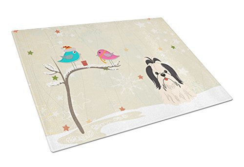 Caroline's Treasures BB2560LCB Christmas Presents Between Friends Shih Tzu Black White Glass Cutting Board, Large, Multicolor
