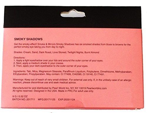 Our six shade collection curated to create infinite looks with bold brown, sultry sand, smokey taupe. Our alluring shades can be worn alone, or combined to create a flawless dramatic smokey look. With endless possibilities and every shade of smoke, this palette has it all.Feature