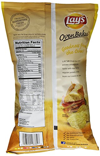 -. Binding : Grocery -. Brand : BAKED LAYS -. EAN : 0490710502565 -. Feature : 6.25 ounce bag of LAY'S Oven Baked Original Potato Crisps / Baked potato crisps serve as a crunchy snack with the classic LAY'S potato chip taste you love / Bag is perfect for enjoying a few snacks for yourself / Pack a few snacks to go to work, or when traveling -. Label : Frito Lay -. Manufacturer : Frito Lay -. Model : cfuda -. MPN : 071-05-0256 -. PackageQuantity : 1 -. PartNumber : 071-05-0256 -. ProductGroup : Grocery -. ProductTypeName : GROCERY -. Publisher : Frito Lay -. Studio : Frito Lay -. Title : Oven Baked Lay's Potato Crisps, Original, 6.25 oz -. UPC : 490710502565