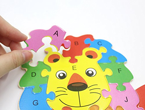 Each piece of the puzzle has a letter, after finishing, it was a complete animal shape, makes baby interested in learning shape and animal, help baby' hand eye coordination and developing intelligence
