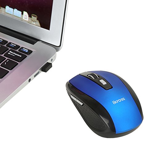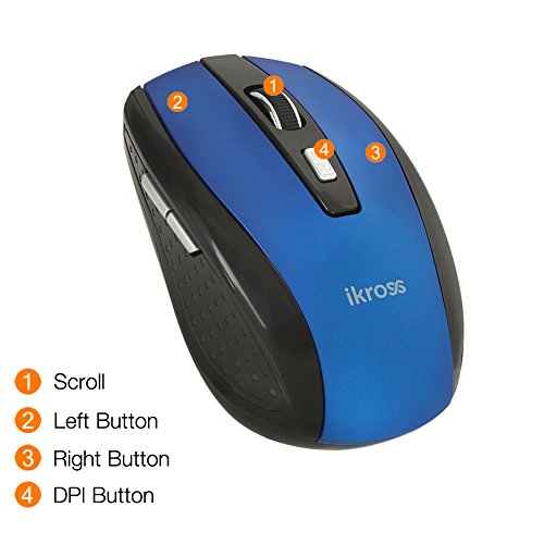 iKross 2.4G Portable Compact Wireless Optical Mouse Mice for Laptop Computer PCs, 2 DPI Levels (800/1600) - Blue/Black