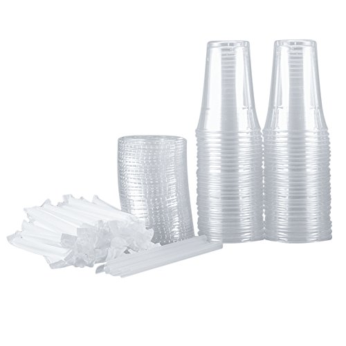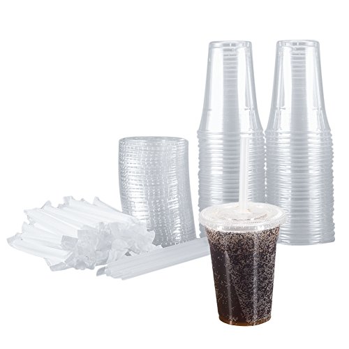 Benail 100 Sets 20 oz Clear Plastic Cups with Lids and Straws Disposable Cups Perfect for Cold Drinks, Iced Coffee, Tea, Smoothie etc.